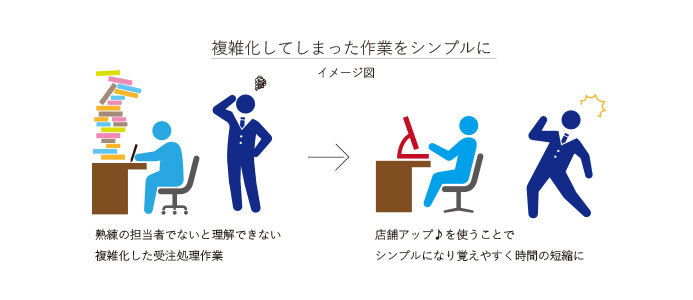 また受注処理がシンプルになったので新しく入ったスタッフにも覚えやすかったようです。