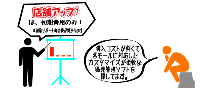 楽天市場、メイクショップの店舗での販売管理システムを探しており、導入コストが低いこと、 カスタマイズができること。が条件でさがしており、コスパの面で当社との折り合いがついたので、 導入をさせていただきました。